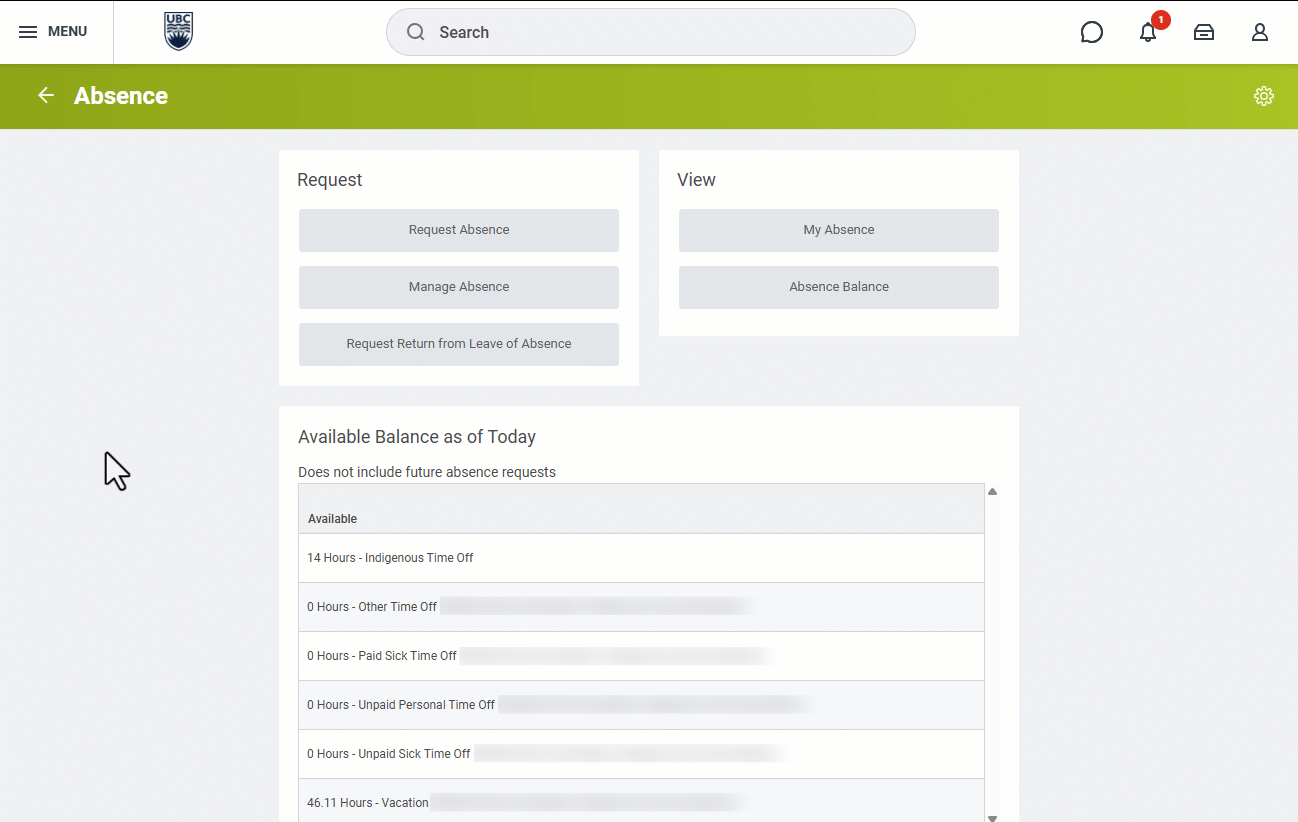 - Instructional information regarding UBC Absence Policies now appears before a request is submitted.