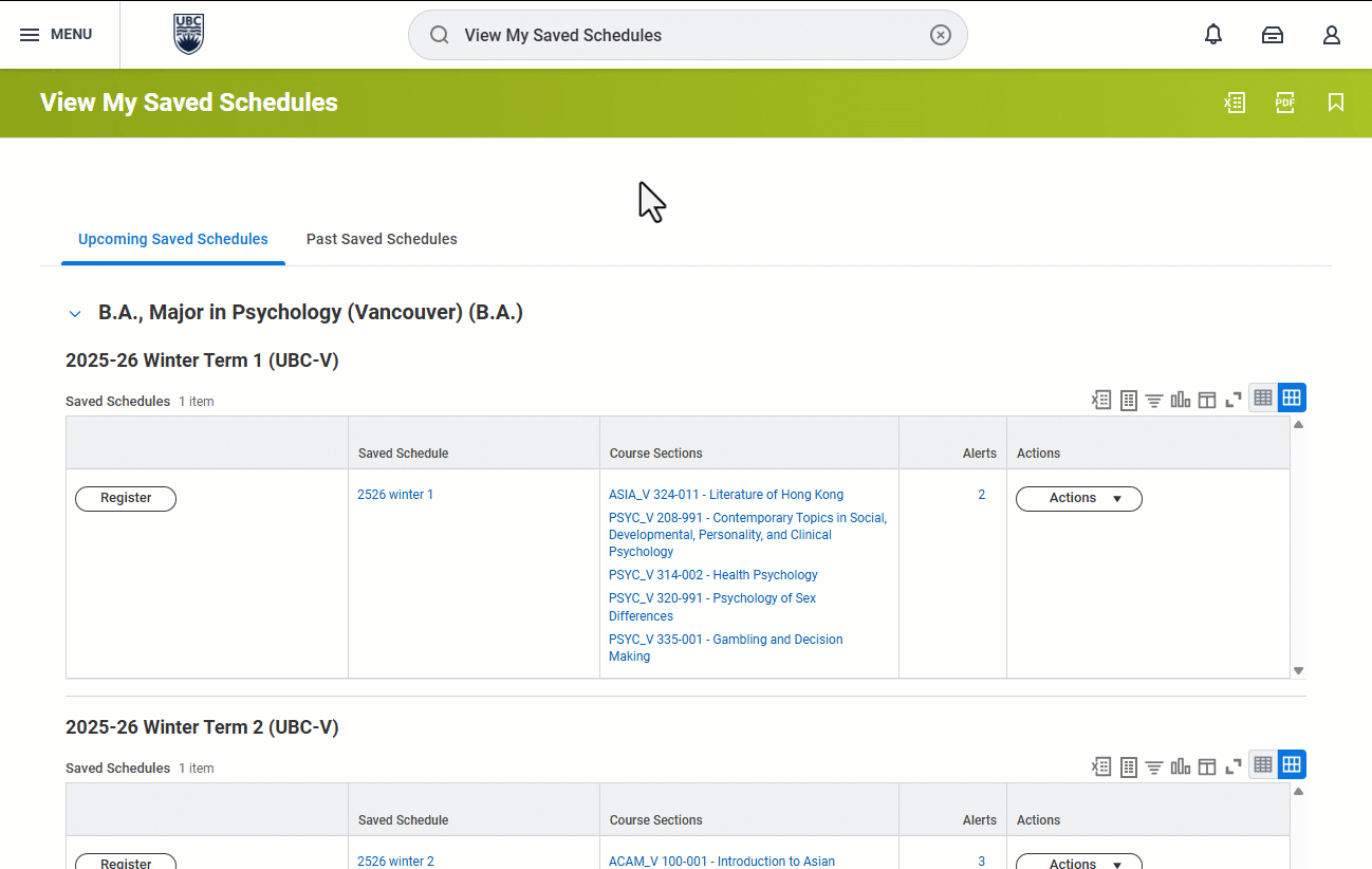 Expanded Alerts on Saved Schedules for Students and Staff saved